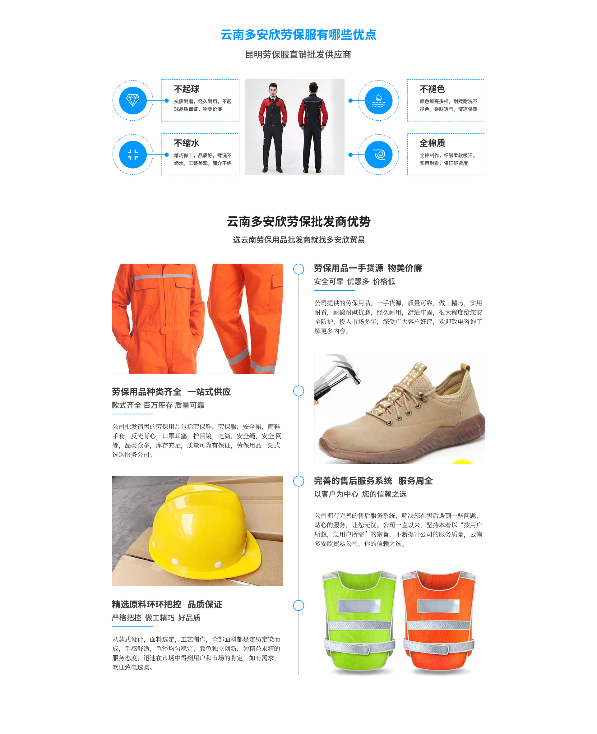 云南多安欣貿(mào)易有限公司位于云南省昆明市官渡區(qū)昌宏路東聚五金建材市場東區(qū)10-10。云南多安欣貿(mào)易有限公司是一家集生產(chǎn)。銷售、批發(fā)為一體的大型勞保用品單位。公司成立18年有余,在這18年里我們憑借我們行業(yè)知識,認真的態(tài)度和售后服務,在云南市場迅速崛起,同時代理銷售國內(nèi)外各優(yōu)良廠商(普通、特種)勞動防護用品。安全防護用品,公司現(xiàn)有員工15人,公司一直以來,堅持本著以“按用戶所想,急用戶所需”的宗旨,從款式設(shè)計,面料選定,工藝制作,為精益求精的服務態(tài)度,迅速在市場中得到用戶和市場的肯定,公司經(jīng)營品種達到一萬余種,包含了勞保用品的各個系列,如定制工裝、頭部防護,呼吸防護,勞保鞋,電力物資雨衣類眼臉部位防護,3m系列,墜落安全防護,交通安全設(shè)施電筒類多功能防護服、防塵防毒。耐酸堿。耐油,耐高溫,防寒,阻燃,隔熱,氣體監(jiān)測,絕緣防靜電,防砸高空墜落,救護,逃生,等特種勞保用品,如(彩條布,吊帶軟梯噸袋安全帽,...